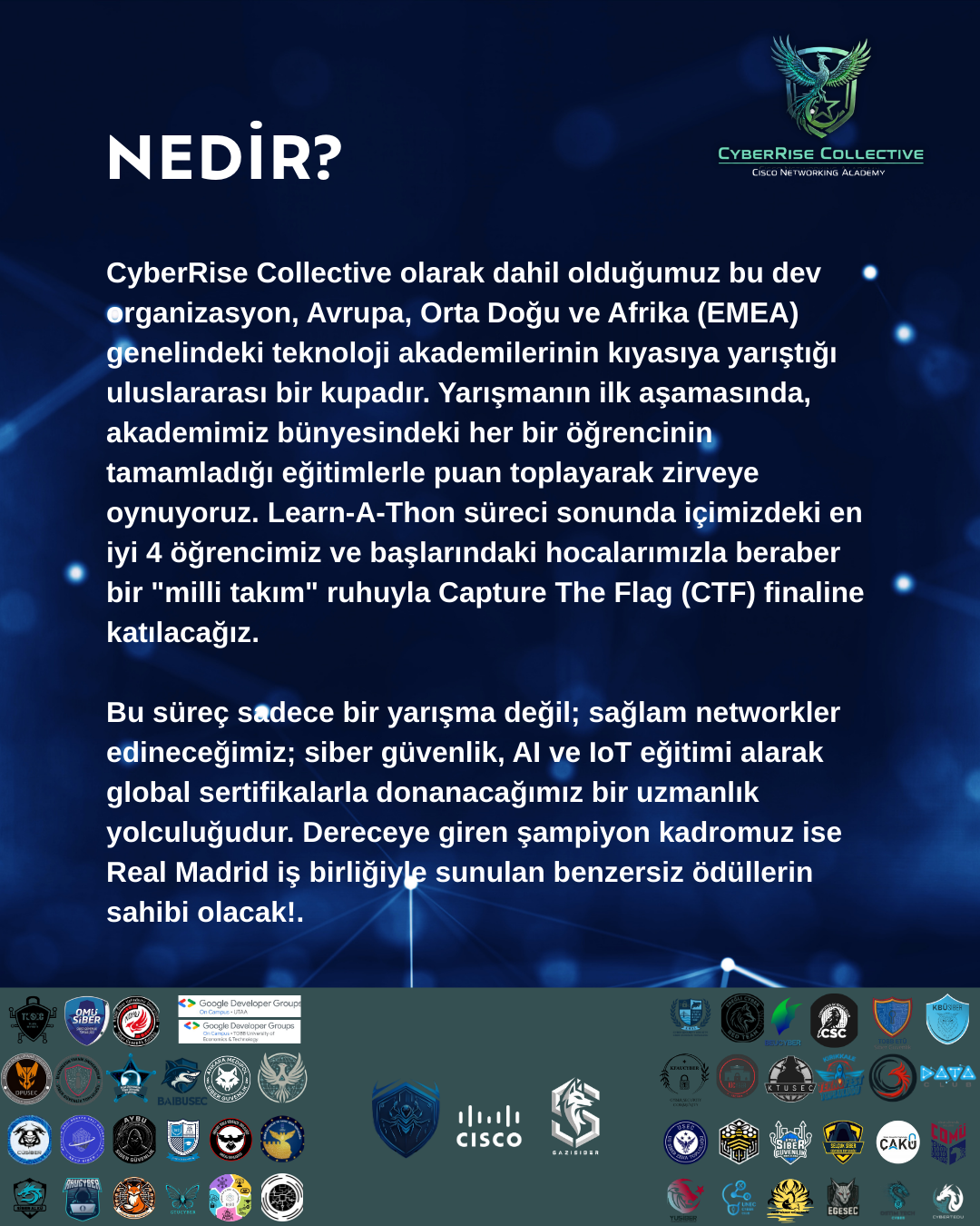 Endüstri 4.0 ve Siber Güvenlik Kulübü olarak, Cisco Networking Academy ve Real Madrid CF iş birliğiyle düzenlenen siber güvenlik dünyasının en prestijli organizasyonlarından biri olan EMEA NetAcad Cup’a katılım sağlıyoruz!